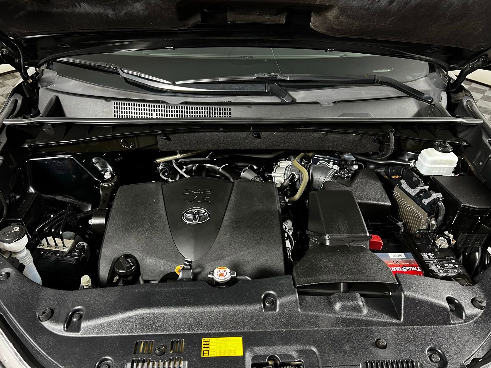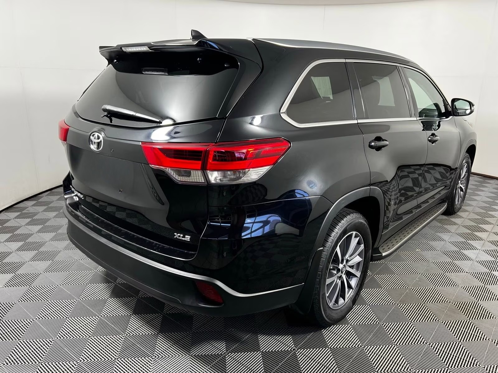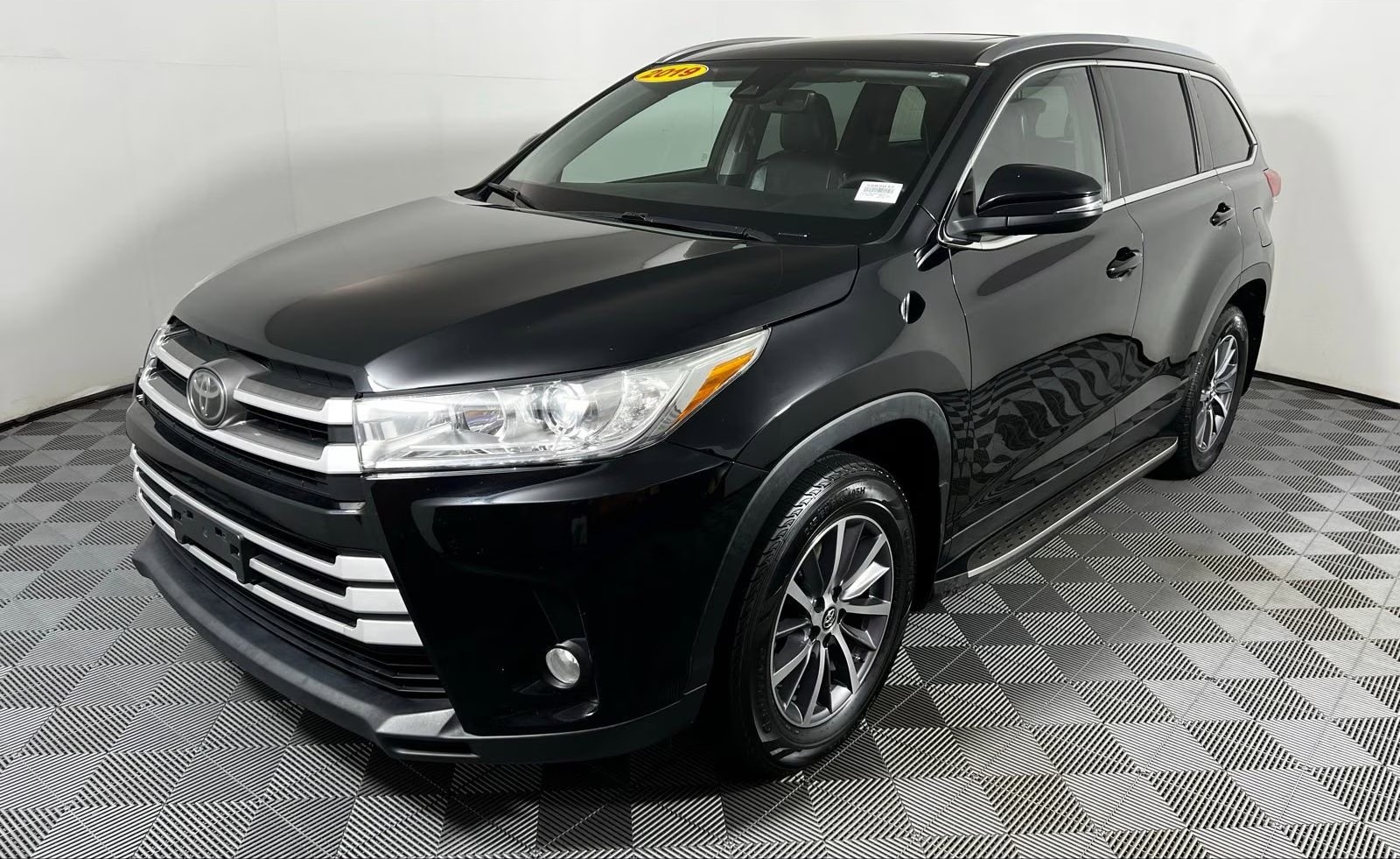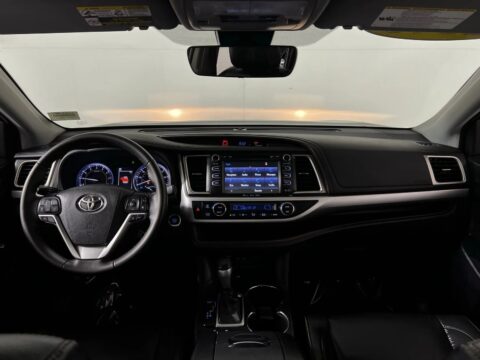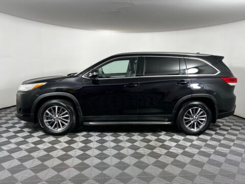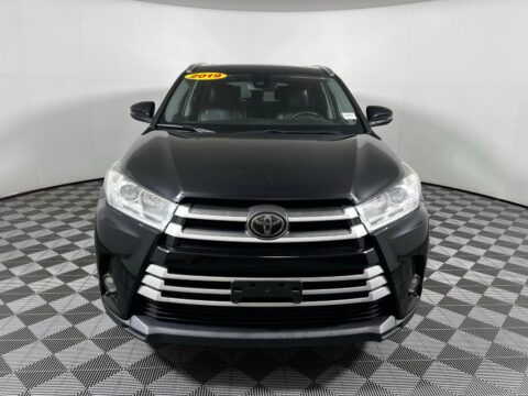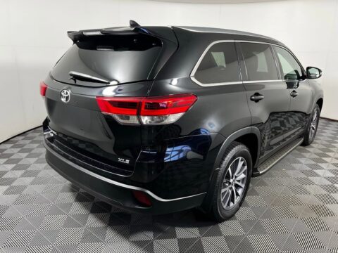 2019 Toyota Highlander XLE Midnight Black Metallic FWD 3.5L V6 8-Speed Automatic Electronic with ECT-i Black w/Leather Seat Trim, 3rd row seats: split-bench, 6 Speakers, AM/FM radio: SiriusXM, Auto-dimming Rear-View mirror, Electronic Stability Control, Exterior Parking Camera Rear, Front Center Armrest, Front dual zone A/C, Front fog lights, Heated Front Bucket Seats, Navigation System, Power moonroof, Rear air conditioning, Rear window defroster, Rear window wiper, Remote keyless entry, Security system, Steering wheel mounted audio controls, Telescoping steering wheel, Tilt steering wheel, Variably intermittent wipers, Wheels: 18 Turbine-Look Alloy.